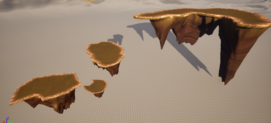 The user draws a shape which defines the shape of the island from a birds eye view. This shape is turned into a floating island. The user is able to adjust the number of divisions, and height of the island via parameters exposed in the HDA.